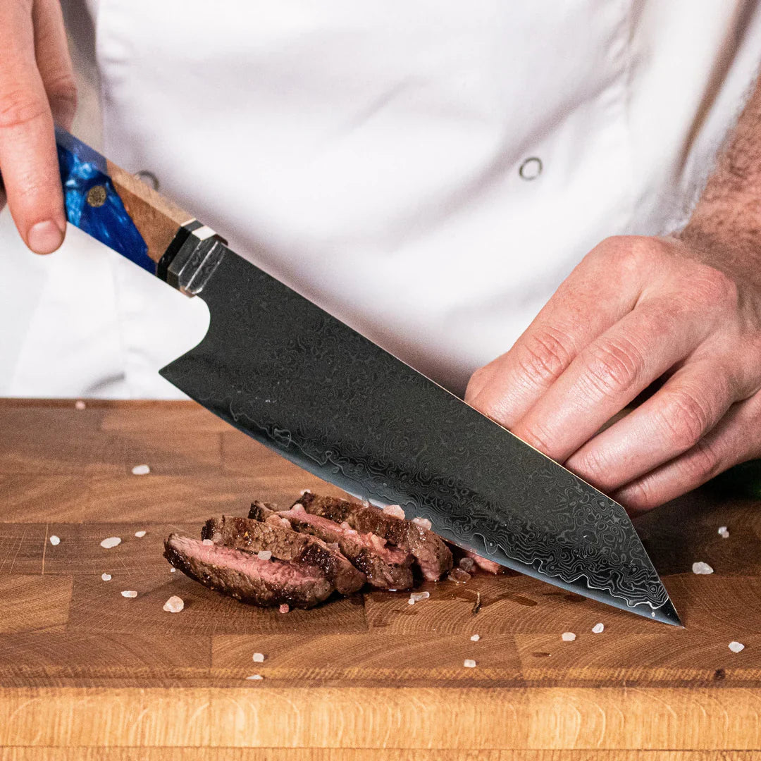 Bladet består av 67 lag japansk VG10-stål som er isherdet ved -196 °C, noe som gir en imponerende hardhet på 60±2 HRC. Knivene er slipt med en tradisjonell japansk teknikk kalt Honbazuke, som gir dem en ekstraordinær skarphet.
