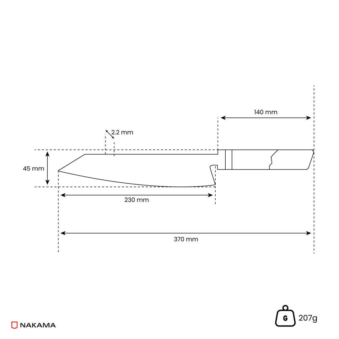 Bladet er laget av 67 lag japansk VG10-stål som er isherdet ved -196 °C, noe som gir en imponerende hardhet på 60±2 HRC. Knivene er slipt med en tradisjonell japansk teknikk kalt Honbazuke, som gir dem en ekstraordinær skarphet.